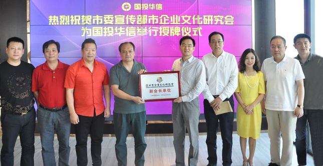 特区企业文化网讯7月28日,深圳市企业文化研究会向深圳前海国投华信投资管理有限公司授予“深圳市企业文化研究会副会长单位”牌匾和奖杯,并吸纳该公司为会员。深圳市企业文化研究会会长李瑞琦、市委宣传部宣传处处长李建阳、市企业文化研究会执行秘书长啸洋,深圳前海国投华信公司董事长李东亚先生、副董事长陈思霞女士等出席了授牌仪式。