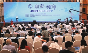 8月22日,由人民日报社和深圳市委、市政府联合主办的“职责与使命——2016媒体融合发展论坛”在深圳开幕。中央部委和各地宣传、网信部门的负责人,中央及地方媒体代表、互联网企业人士、知名专家学者等500多人参会,围绕新时期新闻舆论工作的职责与使命,共商媒体未来,为深入推动媒体融合发展的理论研究、政策机制和实践发展贡献行业智慧。