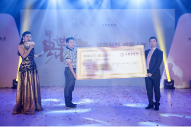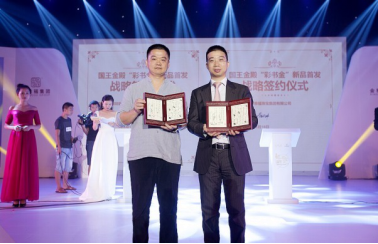 (“中国彩书创始人”何柏俊与金雅福集团董事长黄仕坤代表双方上台签约)