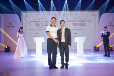 (九江银行广州分行行长朱德银与金雅福集团董事长黄仕坤代表双方上台签约)金雅福珠宝拍卖指定合作伙伴签约仪式
