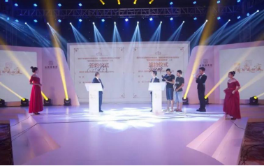 国家质量监督检验检疫总局“国家级珠宝检测重点实验室”、“国家级轻工检测重点实验室”入驻签约仪式 (中国检验认证集团深圳有限公司总经理石智捷与金雅福集团董事长黄仕坤代表双方上台签约)