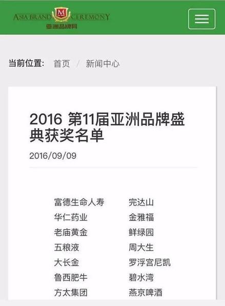 9月9日,第11届亚洲品牌盛典国际颁奖典礼暨2016年亚洲品牌500强发布会在北京隆重举行。历经十年“蝶变”成长的金雅福集团,继前六届上榜之后,再度蝉联本届“亚洲品牌500强”荣誉,排名上升至第245名,较去年提前10个名次。与金雅福集团一同上榜的还有工商银行、丰田汽车、三星、腾讯、华为、中国移动等知名企业。