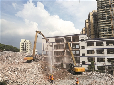 8月17日下午3点多,深圳市政协“强区放权改革”第一视察团到达罗湖“二线插花地”玉龙片区。此时,前方的工地上,两辆印着“罗湖棚改”字样的钩机正在拆除一栋五层楼高的建筑,瓦砾堆上难见人影。“这里变化好快!”视察团中有人感叹。